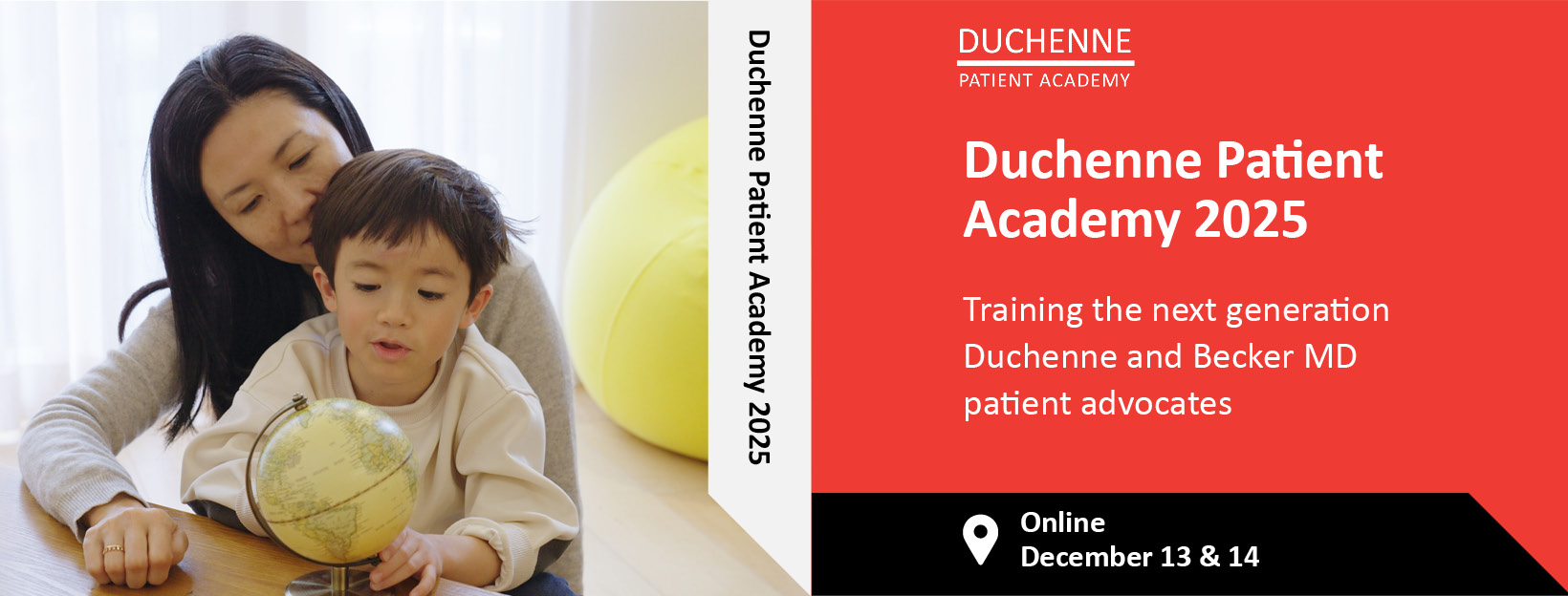 Duchenne Data Foundation and World Duchenne Organization are excited to announce the 2025 edition of the Duchenne Patient Academy, which will be held fully online on Saturday 13 December (from 2pm to 6.30pm CET) and Sunday 14 December (from 2pm to 4pm CET).